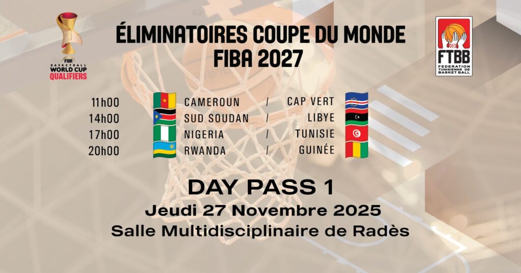 La Fédération Tunisienne de Basketball annonce le démarrage de vente des billets pour les rencontres de la première fenêtre des Éliminatoires de la Coupe du