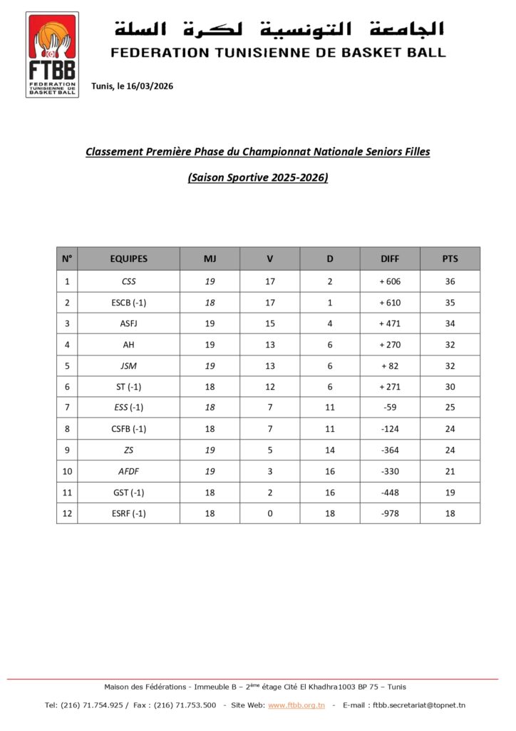 Classement Seniors Filles