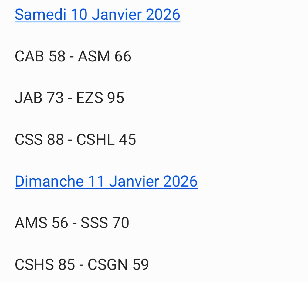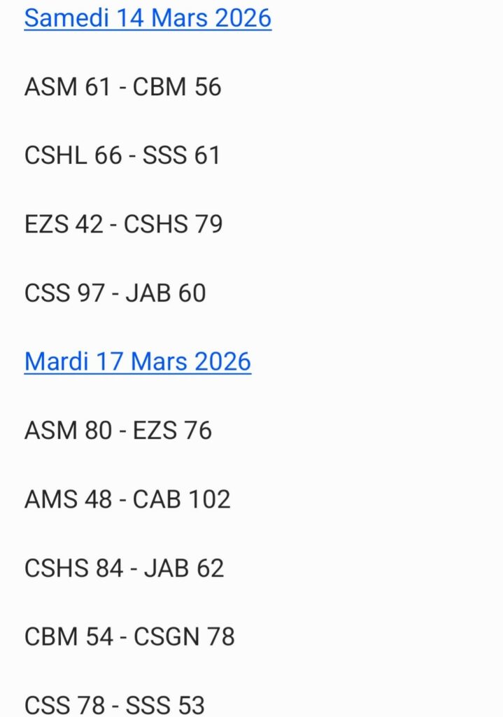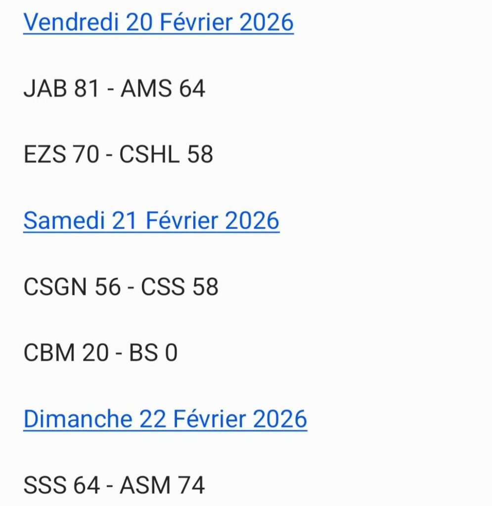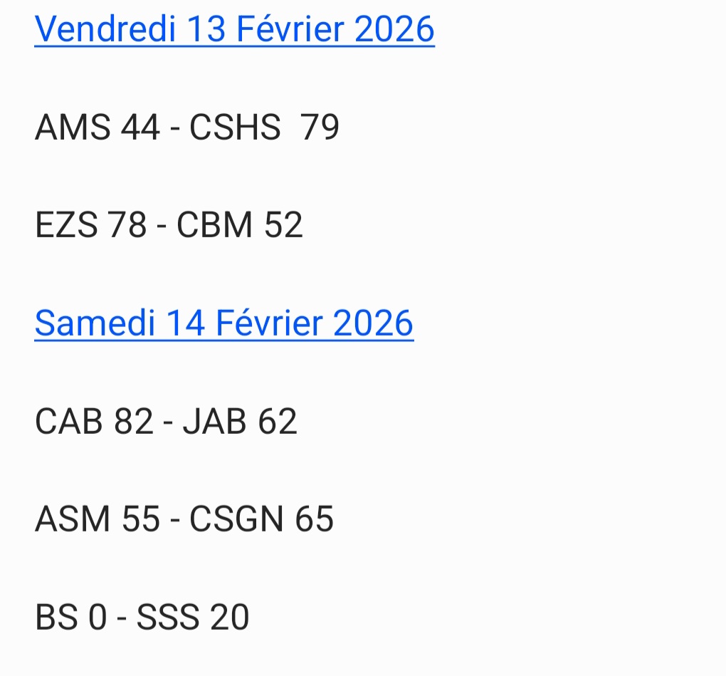 Résultats – National 1 Garçons